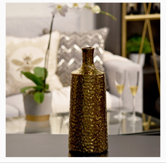 Gold Ceramic Hammered Electroplated Finish Vase